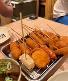 다양한 재료를 꼬치에 꽂아 튀긴 쿠시카츠를 전문으로 하는 가게.