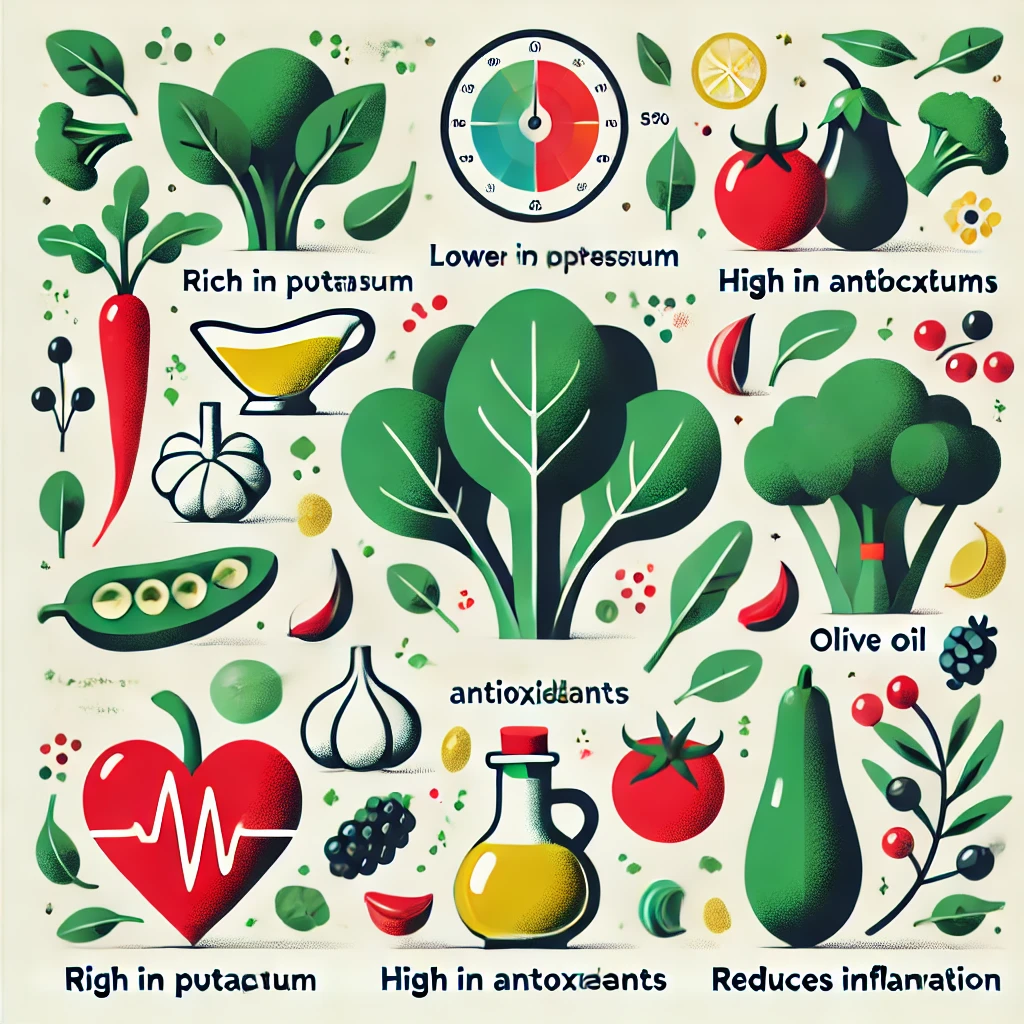 고혈압 관리에 특히 효과적인 음식들로는 녹색 잎채소, 베리류, 마늘, 올리브 오일 등이 있습니다.